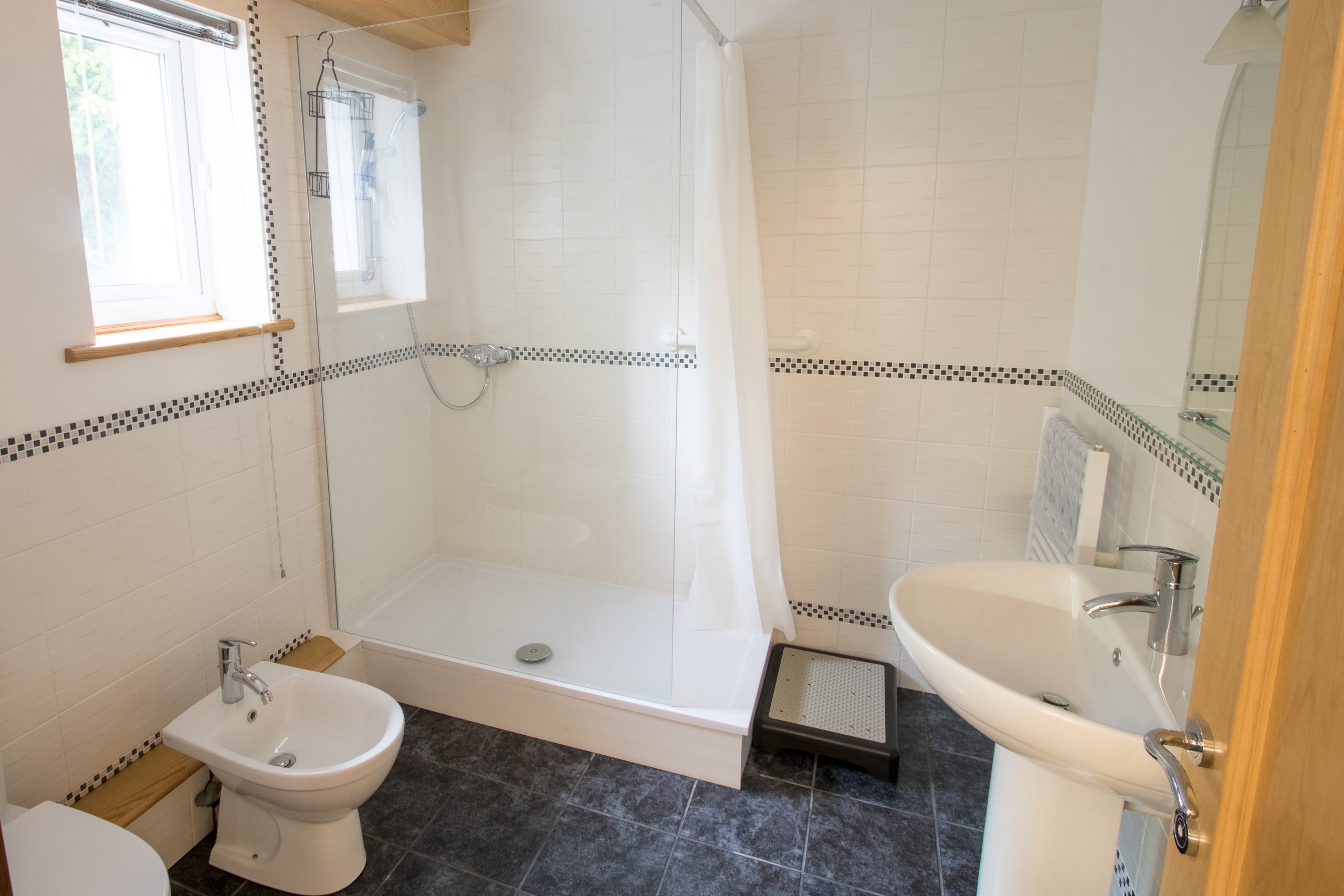 If any of your party have mobility issues we can open up a third bathroom on the lower (living and kitchen area) floor with a toilet and an accessible step in shower.
